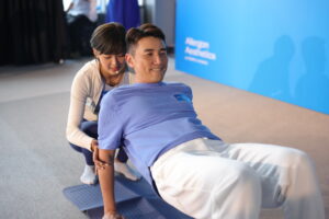 夫妻檔上陣出活動,吸引大批傳媒到場,Inez是一位專業跑手及健身教練,產後三個月已迅速恢復身形,全因接受了冷凍溶脂療程,效果顯著,Inez 還即場帶隊做運動,包括熱身、高強度間歇訓練(HIIT)全身鍛煉,以及冷卻動作,希望大家明白做瘦身療程的同時也要運動配合,鼓勵大家通過適當的運動和科技輔助,雕塑理想的身型。