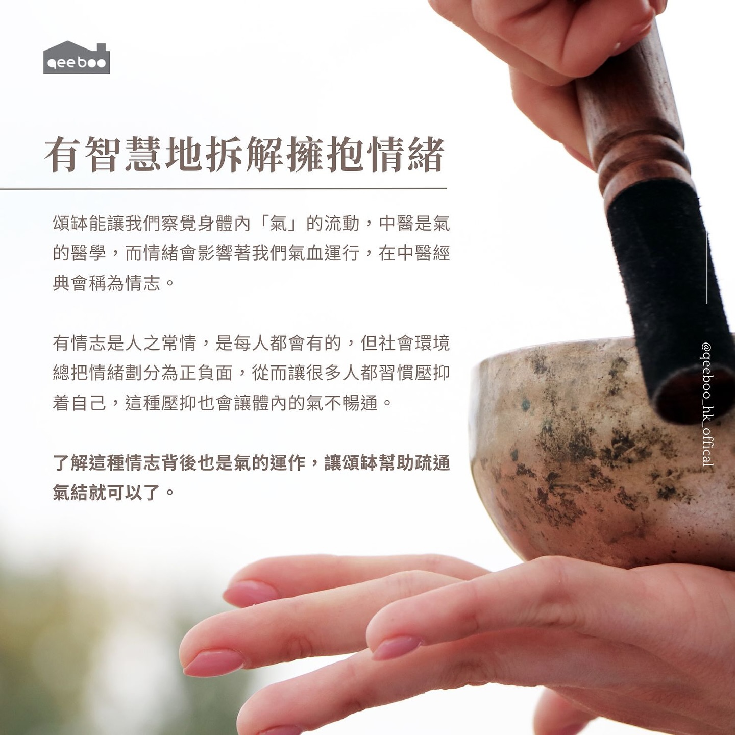 Qeeboo 創辦人 Anakin 和 Black 認為香港人在疫情下開始注重健康,但除了身體要健康外,心靈健康亦很重要,於是在2021年創立Qeeboo,主打身心靈產品,在世界各地引入不同的產品, 照顧人的四感「視、聽、嗅、味」,當中包括:「聖木鼠尾草等天然薰香」、「聲音治療 - 頌缽」、「植物盆景」、「咖啡或茶」 四大類別,每個類別產品選擇繁多,讓客人可因應所需作出配搭,希望每個走進Qeeboo這間心靈百貨店的人都能找到自己想要的。 Qeeboo 以「忙碌生活中,尋找內心寧靜」為宗旨,為讓客人尋找屬於自己的內心寧靜,除提供不同周邊配件,甚至會有相關課程提供。 例如香薰、聖木屬淨化心靈的產品, Qeeboo特意搜羅不同種類配件,讓客人揀選適合自己風格品味的配件回家;來自尼泊爾的頌缽,尺寸亦有很多選擇,Qeeboo甚至會為客人安排上頌缽課堂,教導客人如何使用。